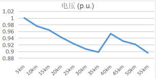 架空(kong)線路是電(dian)(dian)感性的,當電(dian)(dian)流沿(yan)線路流動時,電(dian)(dian)壓(ya)會同時下降(jiang)。沿(yan)線的電(dian)(dian)壓(ya)如(ru)下所示: