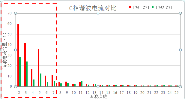 補(bu)償前后諧波(bo)電流情況對(dui)比(bi)