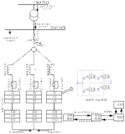 主電路拓撲結構如圖1.2所示,SVG模塊級聯后通過連接電抗器直掛于35kV母線。