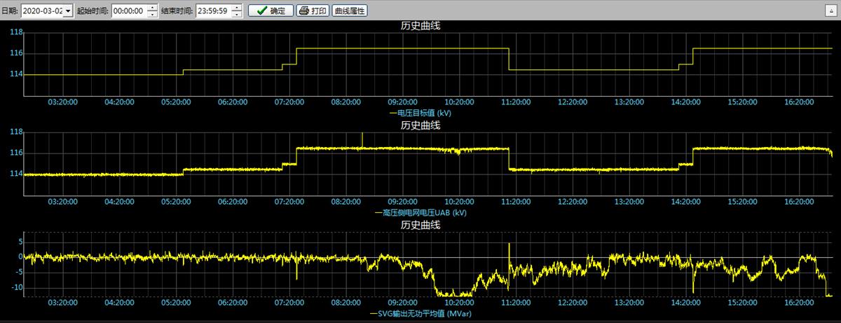 SVG設備實時檢測110kV側母線電壓,以接收到的AVC指令作為電壓控制目標進行閉環控制。