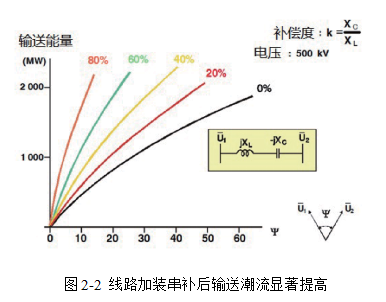 線路加裝(zhuang)串補后,能(neng)夠有效的提高(gao)輸送潮(chao)(chao)流,以40~50%串補度為例(li),線路有功潮(chao)(chao)流一(yi)般能(neng)提高(gao)30%左右(you)。